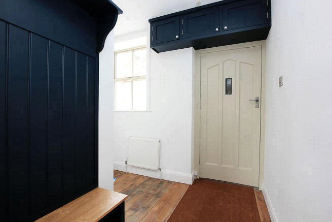 With a substantial front entrance door. Central heating radiator. Timber painted double glazing. Varnished boarded flooring. Fitted oak-top shoe bench. Bespoke wall panel with cloaks hooks and a hat store. Staircase to the first floor.