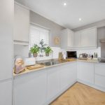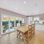 18'7" x 11'3" A well proportioned dining kitchen appointed with contemporary base and wall, cupboard and drawer units in a contemporary matt grey finish. All with soft closing doors. Complimentary oak effect worktop surfaces. Stainless steel sink and matching drainer. Built-in Whirlpool oven and grill. Four ring ceramic hob having stainless steel splash-back and extractor canopy over. Neutral ceramic wall tiling. Integrated fridge and freezer. Integrated dishwasher. Integrated automatic washing / drying machine. Cupboard housing the Worcester Bosch gas central heating boiler. Recessed LED ceiling spotlights. UPVC sealed unit double glazed bi-folding doors leading out to the enclosed rear garden. Double glazed hardwood window. Amtico parquet flooring.