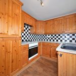 10'9" x 7'11" UPVC sealed unit double glazed window and matching rear entrance door leading out to the patio garden. Fitted base and wall beechwood units with contrasting laminated worktop surfaces and tiled surrounds. Composite sink with matching drainer. Built-in oven. Integrated fridge and freezer. Plumbing for a washing machine. Wall mounted Baxi gas combination boiler. Useful storage space underneath the staircase.