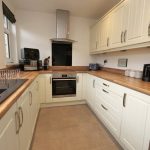 16'10" x 7'6" Well appointed with a range of modern cream fronted fitted wall and base units incorporating contrasting walnut block effect worktop surfaces together with matching up-stands. One and a half bowl composite sink with drainer unit. Hotpoint electric oven/grill. Four ring Hotpoint ceramic hob with curved glazed extractor canopy. Plumbing for a washing machine. Three UPVC sealed unit double glazed windows to the rear together with UPVC sealed unit double glazed rear entrance door. Central heating radiator. Useful store place underneath the stairs. Recessed ceiling spotlights.