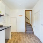 12'6" x 8'6" Superbly appointed with a range of contemporary base and wall units having white gloss fronts with granite style worktop surfaces including contrasting tiled surrounds. Stainless steel sink and drainer unit. Built-in oven with a four ring Belling ceramic hob having a backing plate together with a Cooke and Lewis extractor hood above in a chimney style canopy. Plumbing for an automatic washing machine. Double central heating radiator and a wall mounted Vokera gas combination central heating boiler. Fitted low voltage ceiling spotlights and lighting beneath the wall units. Sash style UPVC sealed unit double glazing. Substantial external door to the attractive enclosed stone flagged rear yard. Staircase to the first floor. Deep built-in store place under stairs including a window, an electricity socket and an electric light.