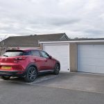In a separate block nearby - including parking for a vehicle in front of the garage.