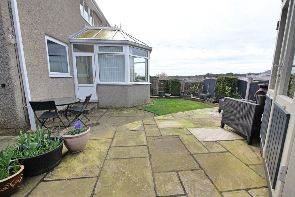 An entrance hall, a superbly appointed kitchen with quality contemporary two-tone units incorporating built in appliances, an L-shaped living dining room and a conservatory. Whilst on the first floor a landing leads to three well planned bedrooms, with the rear bedrooms enjoying fine long-distance views over Skipton towards Embsay Crag and a three-piece house bathroom including a shower over the bath. There is an established terraced front garden. The well-proportioned enclosed side and rear garden provides an attractive feature - including lawn, flowerbeds, stone flagged patio, summer house, green house, timber garden shed and a useful outbuilding with light and power. The property also includes a single garage in a separate block nearby with vehicular parking in front of the garage.