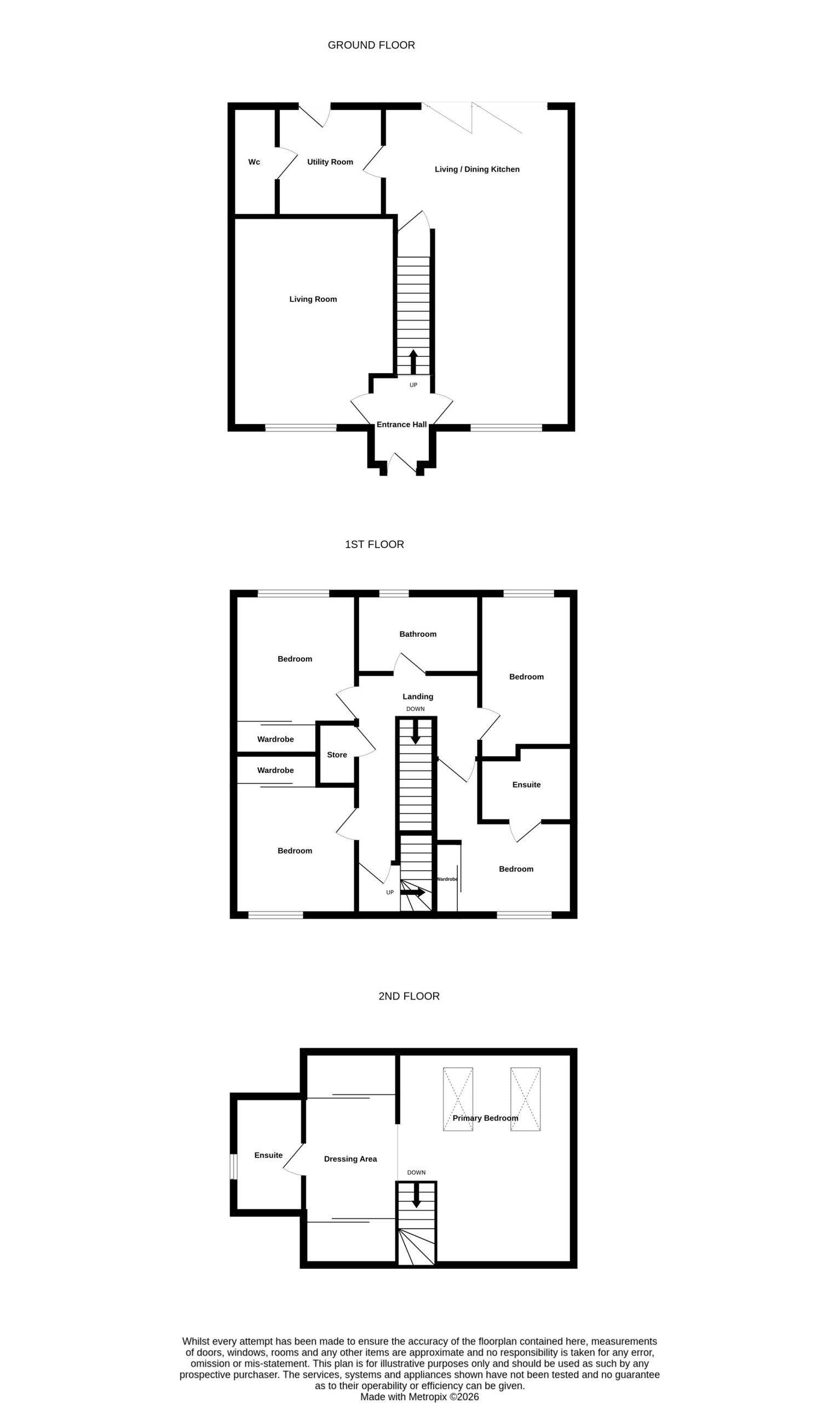 An entrance hall. Spacious living room. Living/dining kitchen with a range of high quality built-in appliances. Utility room. Downstairs WC. On the first floor there are four well planned bedrooms. The second bedroom is accompanied by an en-suite shower room. A house bathroom with separate bath and shower. Landing and half landing having additional staircase leading to the second floor. The primary bedroom suite occupies the second floor with velux windows, a dressing area including a range of wardrobes on both sides, an access to a contemporary en-suite shower room. Outside there is a generous private driveway leading to a detached single garage having light and power facilities. Electric car charging point. Established front garden enjoying well stocked flowerbeds. The rear garden is well proportioned and landscaped with stone flagged patio area. Undulating lawn. Covered seating area. At the rear there there is a detached garden room with bi-folding doors, light and power (suitable for a variety of purposes). Pleasant views.