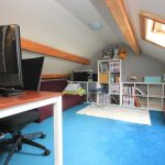 14'10" x 11'5" (restricted head-height into eaves) A well proportioned versatile space with sealed unit double glazed velux roof window. Central heating radiator. Exposed beams. Eaves store cupboards.